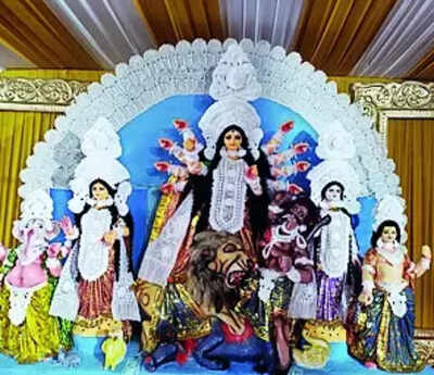A View Of Durga Idiol Inside Puja Pandal Stock Photo - Alamy