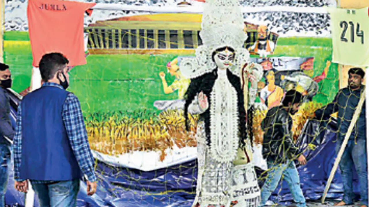 ANI on X: "West Bengal | Saraswati Puja pandal in Kolkata had theme of WBSSC scam showing Partha Chatterjee & Arpita Mukherjee(23.01) Teachers are struggling for jobs,incompetent people got jobs by giving