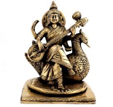 Download this stock image: Goddess Saraswati idol decorated at Puja pandal, Saraswati symbolizes creative energy and is con… | Saraswati idol, Saraswati statue, Art