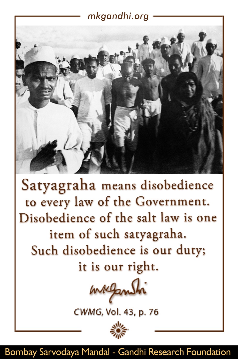 Mahatma Gandhi (1869-1948) on X: "Satyagraha means #disobedience to every law of the Government. Disobedience of the salt law is one item of such # satyagraha. Such disobedience is our #duty; it is