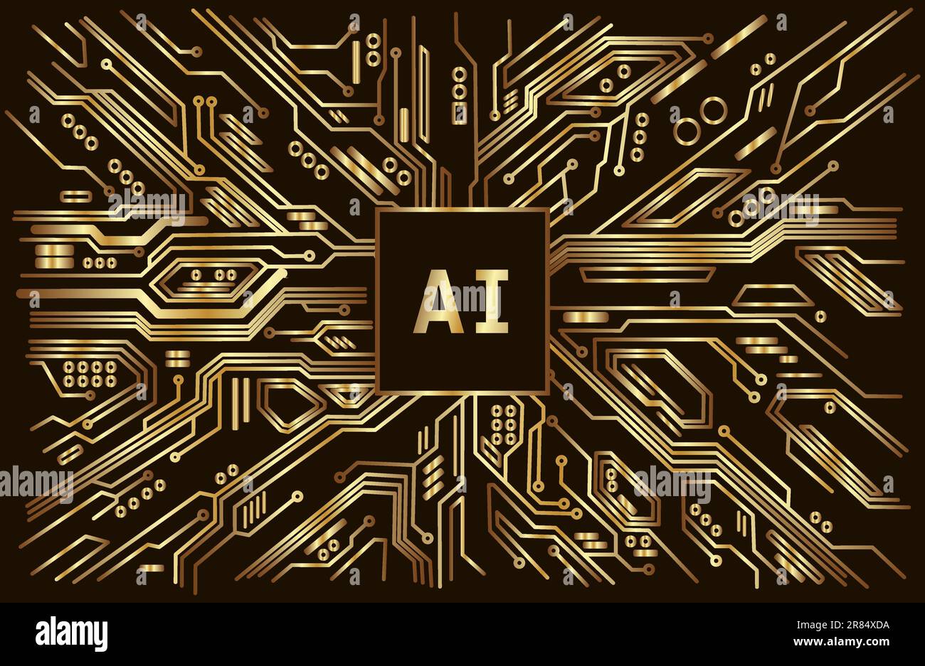 KI künstliche Intelligenz Chip Gold Schaltung Hintergrund dunkle ...