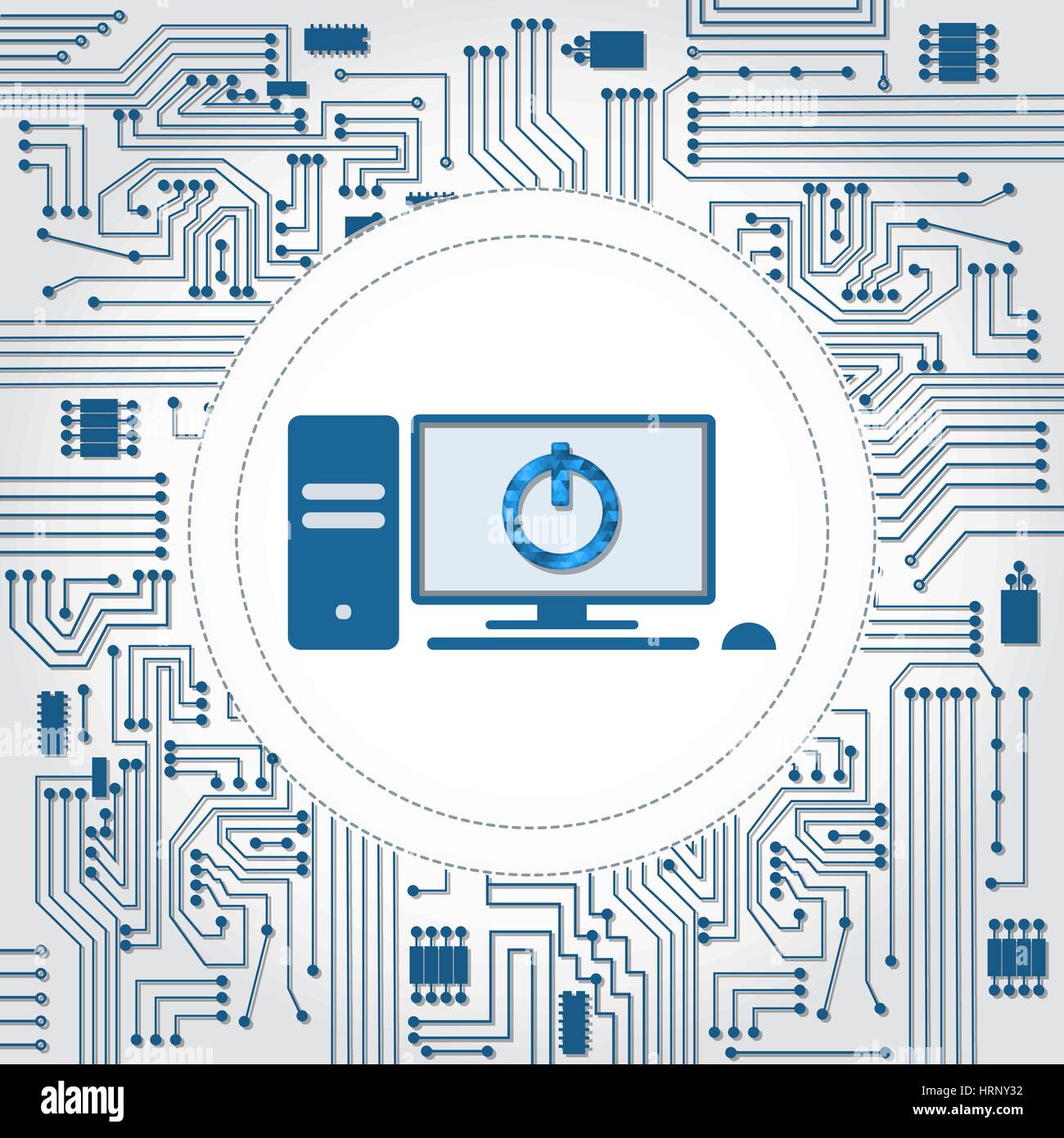 Elektronik Schaltung Hintergrund. PC mit, off-Taste auf dem ...