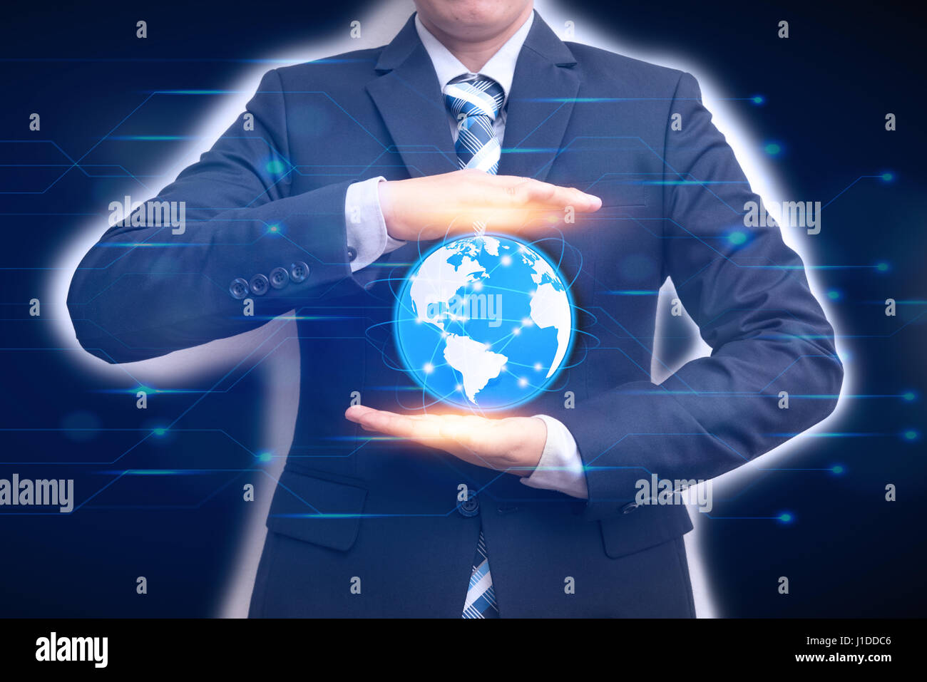 Technologien verbinden das Wort mit Geschäftsmann mit digitalen ...