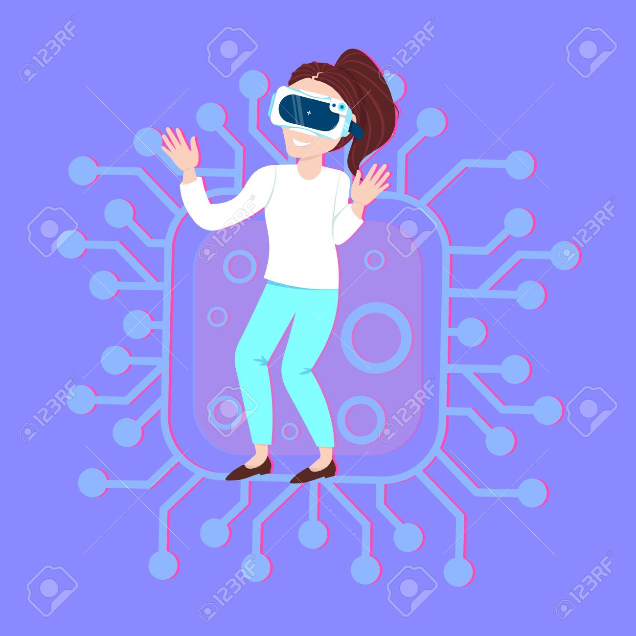 Frau Trägt Virtual-Reality-Brille Über Schaltungshintergrund ...