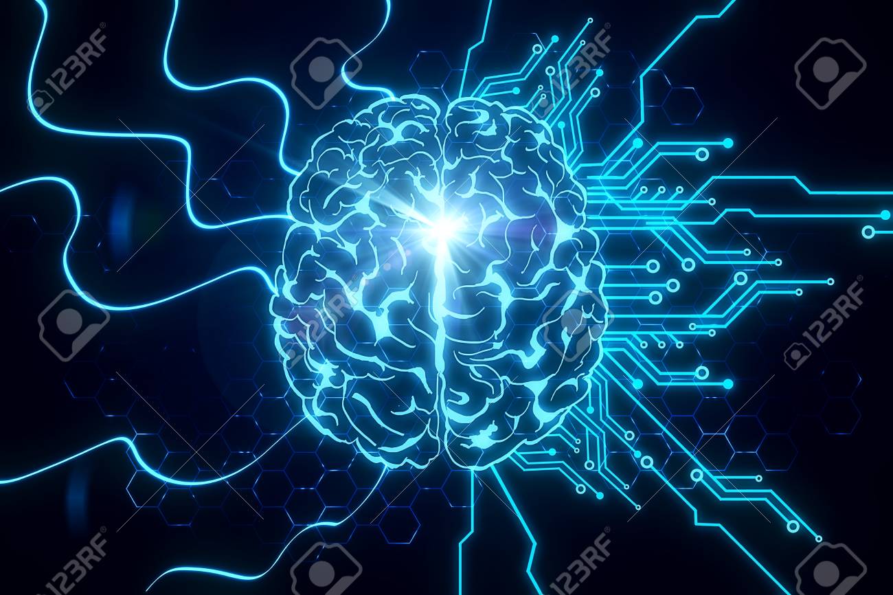 Kreatives Leuchtendes Blaues Gehirn Auf Schaltungshintergrund. KI ...