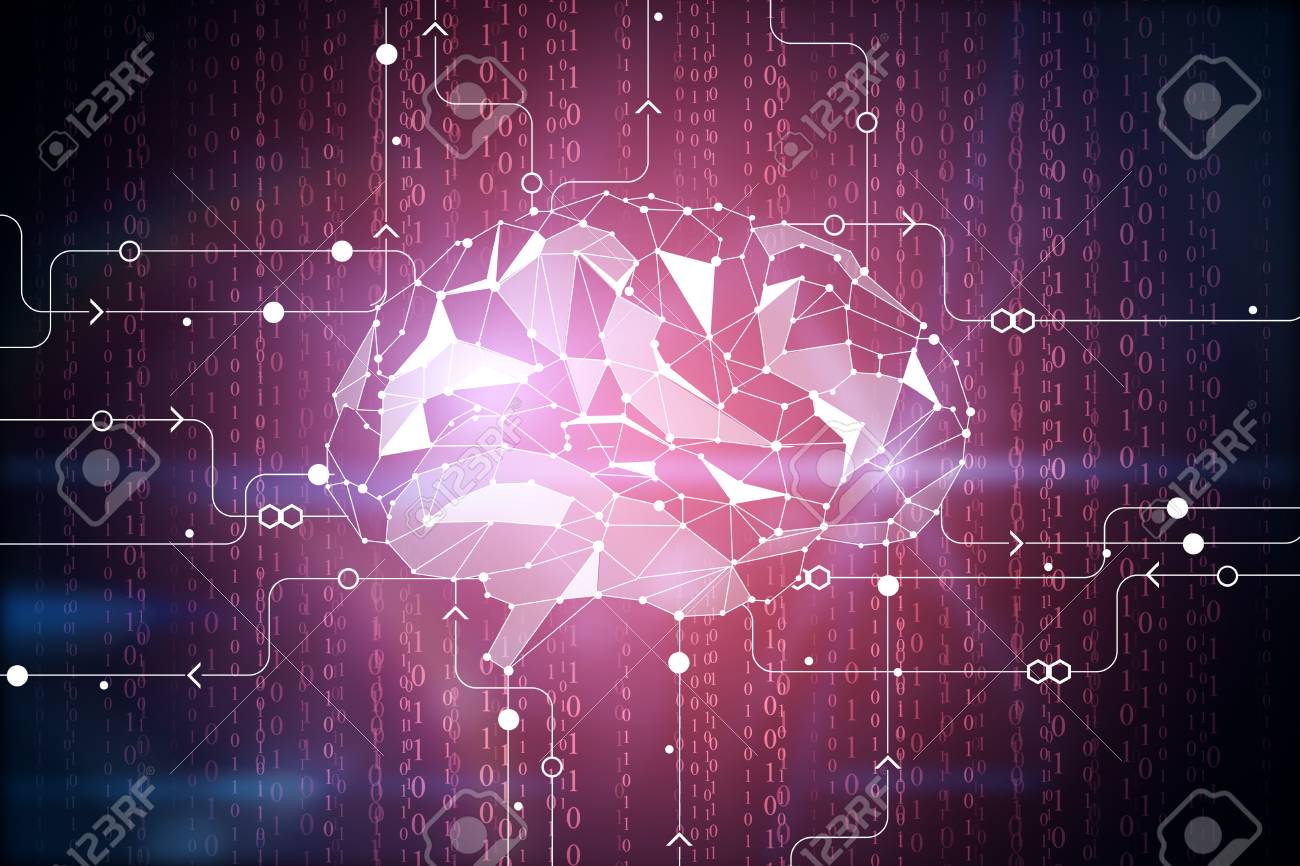 Abstraktes Digitales Polygonales Gehirn Auf Schaltungshintergrund ...