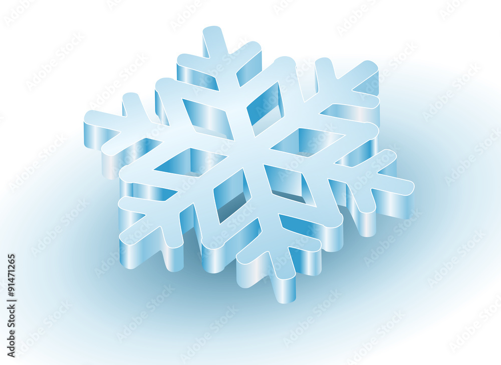 3D-Schneeflocke, liegend, Schnee, Winter, Symbol, Vektor, hellblau ...