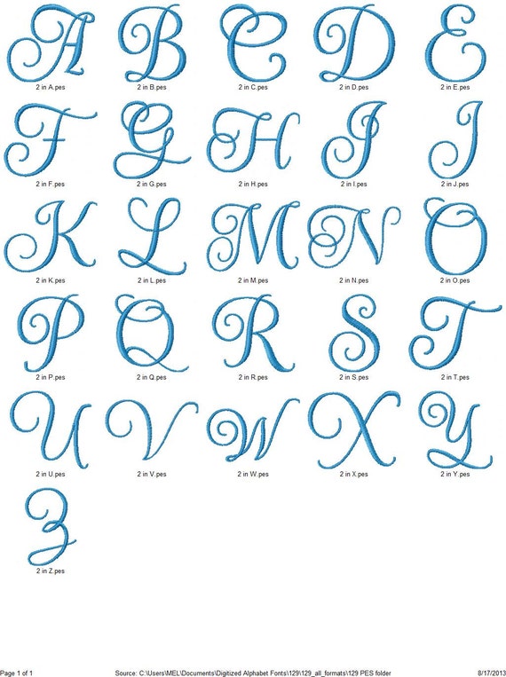 Font Monogram 129 Machine Embroidery Cursive Script Monogram ...