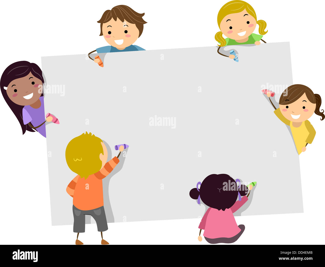 Illustration der Stickman Kinder schreiben mit Buntstiften auf einem leeren Brett Stockfotografie - Alamy