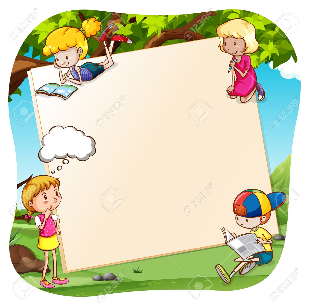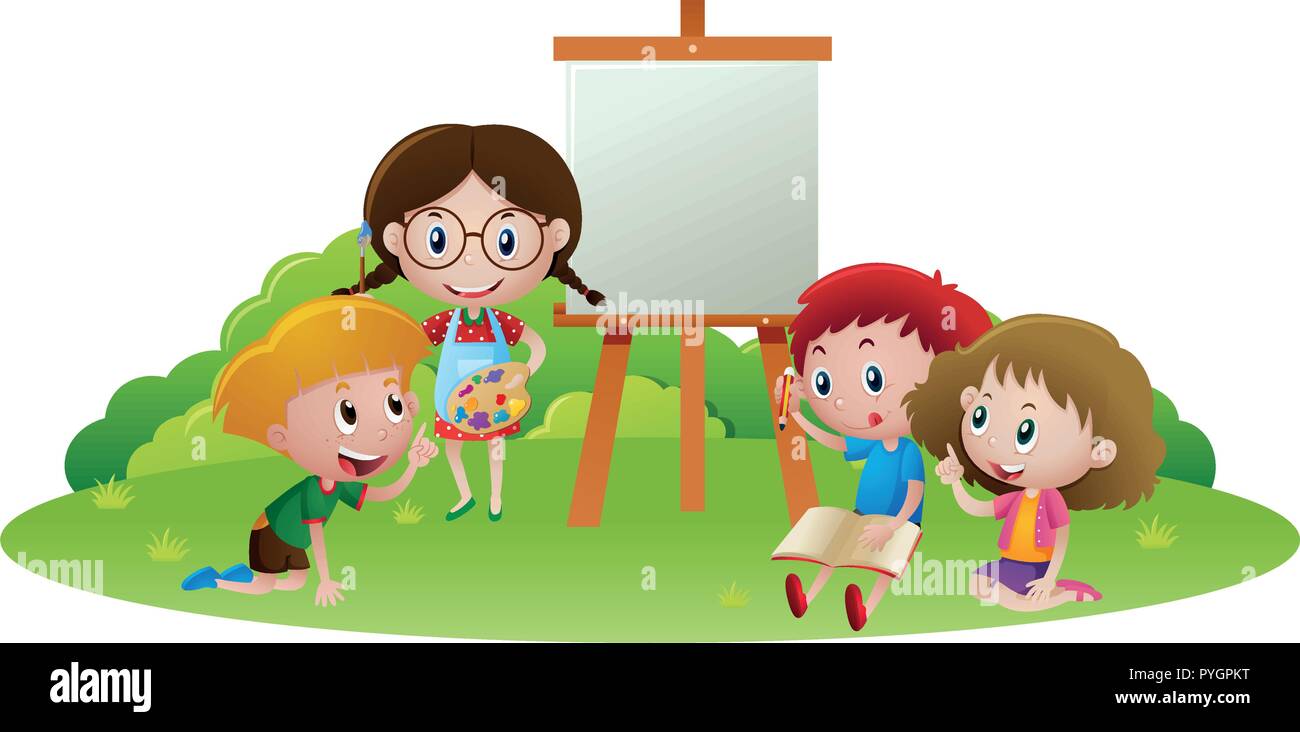 Kinder lesen und schreiben im Park: Stock-Vektorgrafik (Lizenzfrei) 284894579 | Shutterstock