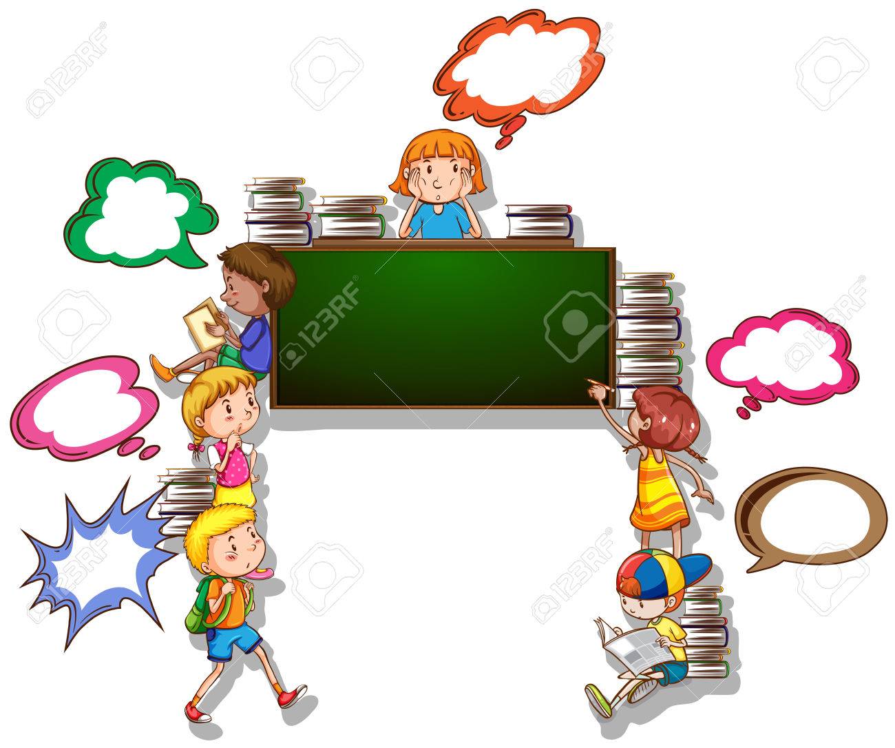Kinder, Bücher Zu Lesen Und Zu Schreiben An Bord Illustration Lizenzfrei nutzbare SVG, Vektorgrafiken, Clip Arts, Illustrationen. Image 49391337.