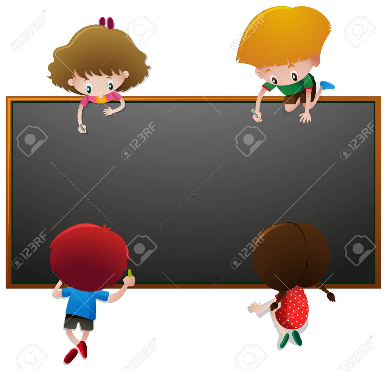 Kinder, Die Auf Tafel Abbildung Schreiben Lizenzfrei nutzbare SVG, Vektorgrafiken, Clip Arts, Illustrationen. Image 71674125.