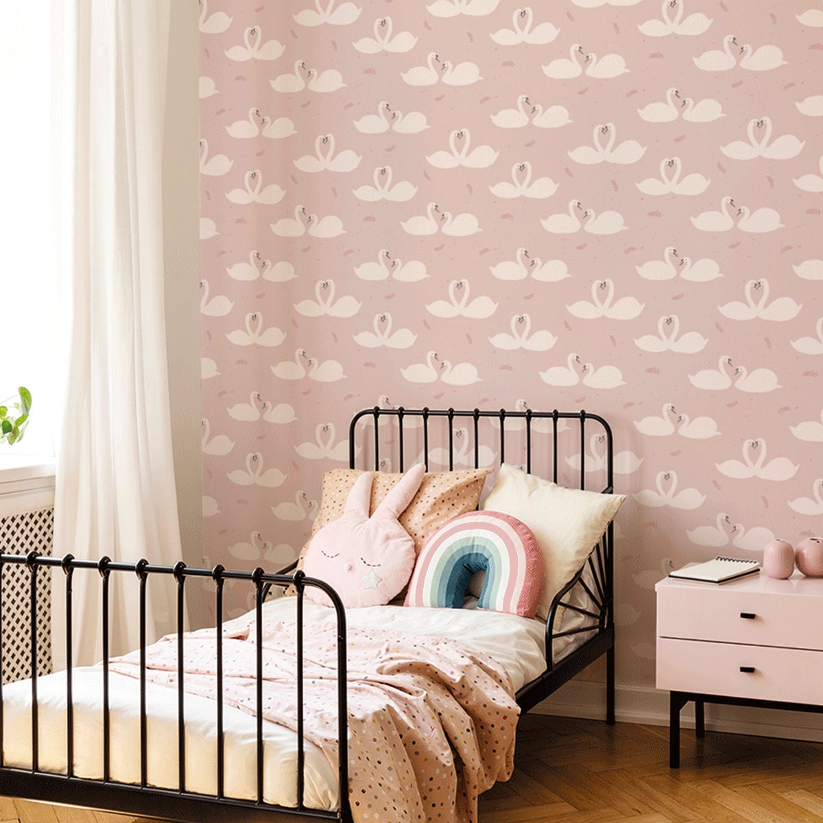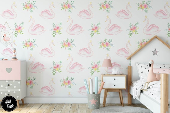 Schwan Tapete für Kinderzimmer Dekor, Rosa Schwäne für Mädchen Schlafzimmer - Etsy.de