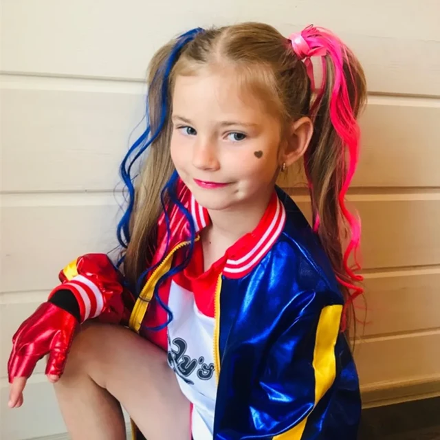 Selbstmordkommando Harley Quinn Perücke Rosa Und Blaue Perücke Langes Lockiges Haar Cosplay Perücke Quinn Bunte Bündel Ausgefallene Kostüme