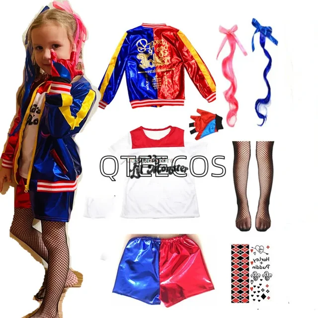 Selbstmord kommando Harley Quinn Cosplay Kostüme Kinder Erwachsene Halloween T-Shirt Hosen Jacke Gürtel mit Perücke Neujahr Party Kleidung