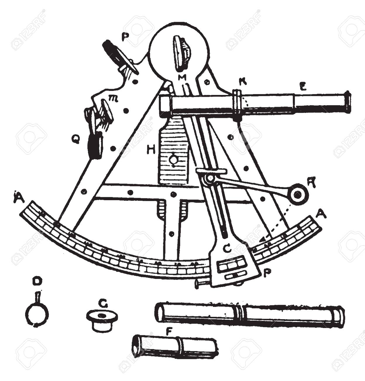 Sextant Is An Instrument Of Reflection Used By Navigators For Measuring The Altitudes Of Heavenly Bodies, Vintage Line Drawing Or Engraving Illustration. Royalty Free SVG, Cliparts, Vectors, and Stock Illustration. Image 132969878.