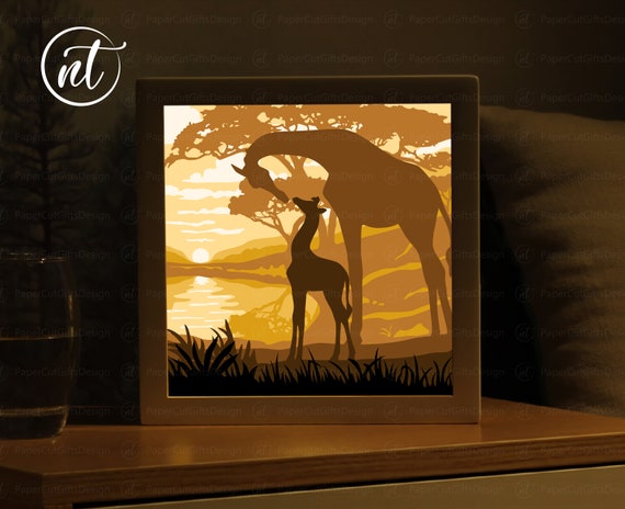 Mother and Baby Giraffe Light Box Template, Paper Cut Shadow Box Template - Etsy