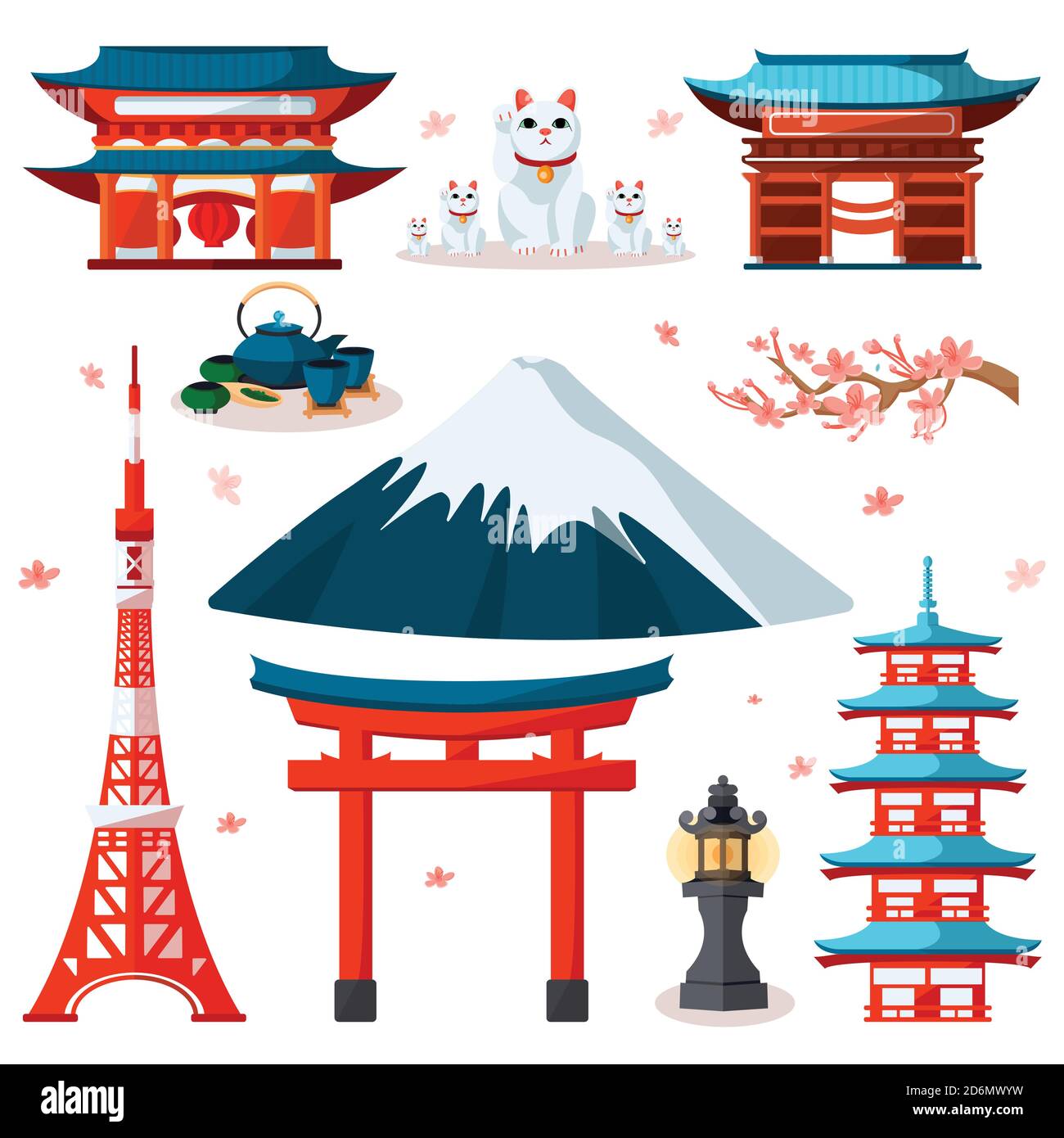 Shinto japan Schrein Reise-Symbole setzen Vektor Stock ...