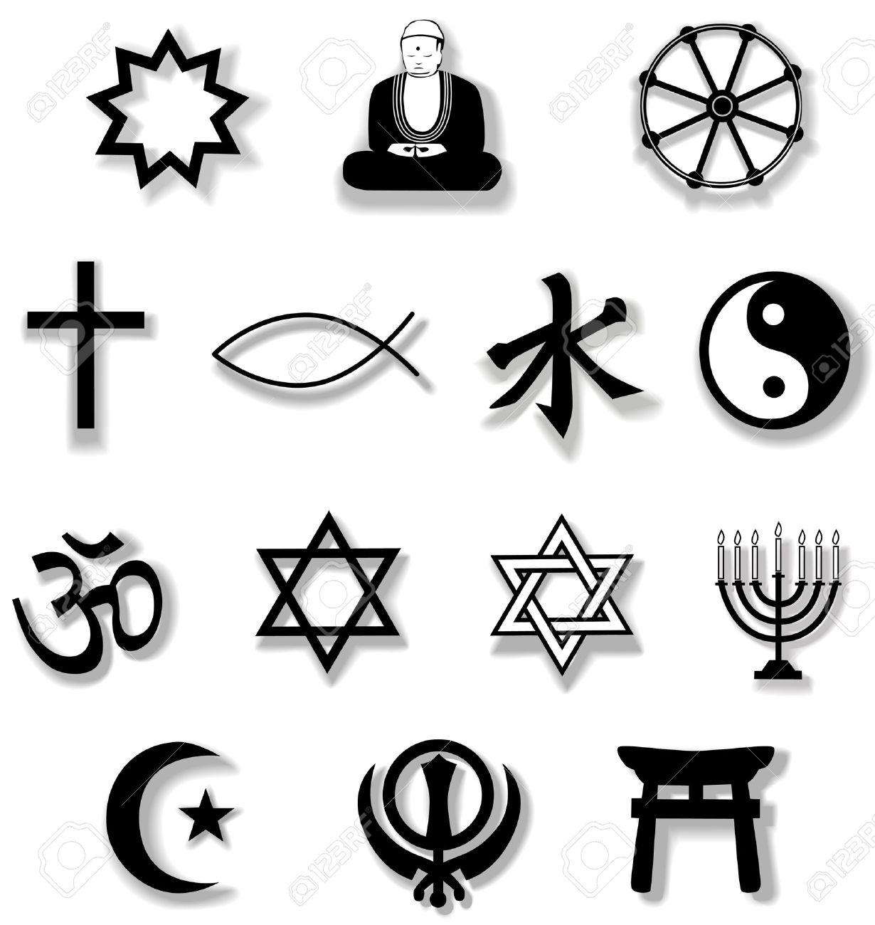 Religionen Ikonen der Welt, schwarzweiße Hintergründe Stock ...