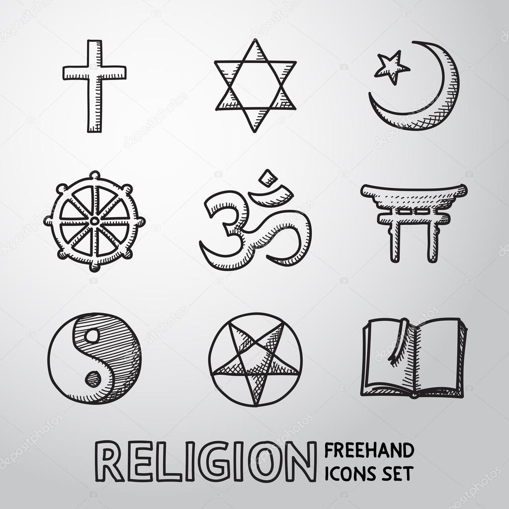 Weltreligion handgezeichnete Symbole gesetzt. Stock-Vektorbild von ...