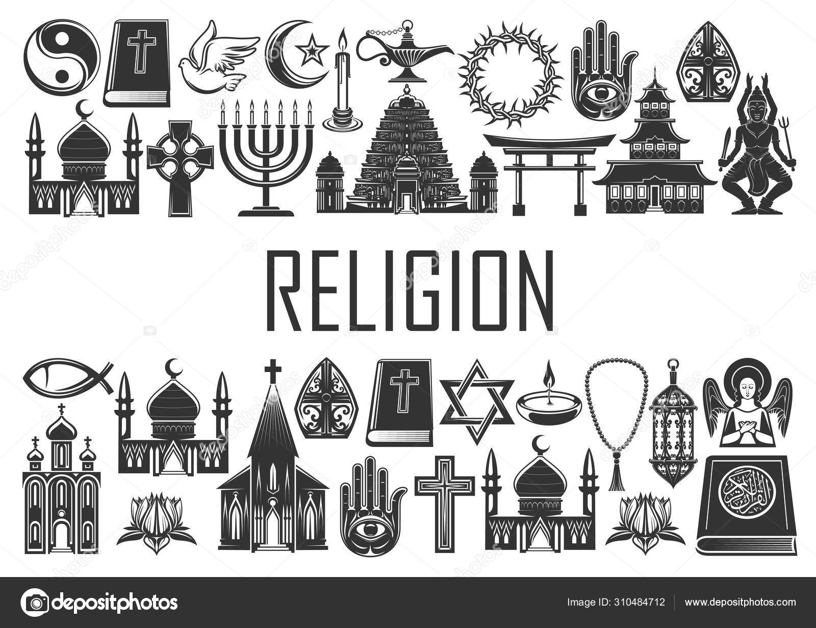 Satz Von 13 Editierbaren Religionsikonen Enthält Symbole Wie ...