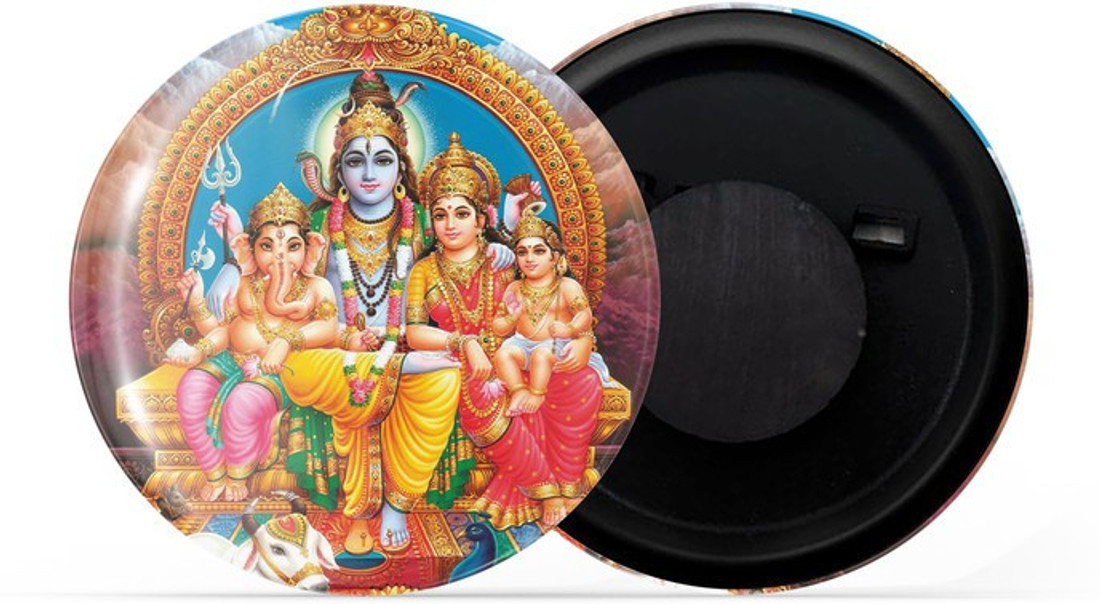 Dhcrafts Magnetic Badges Multicolor Shiva Parvati Ganesh Murugan Family Glossy Finish Design Pack of 1 - dhcrafts