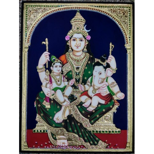 Parvathy ganesha murugan tanjore painting