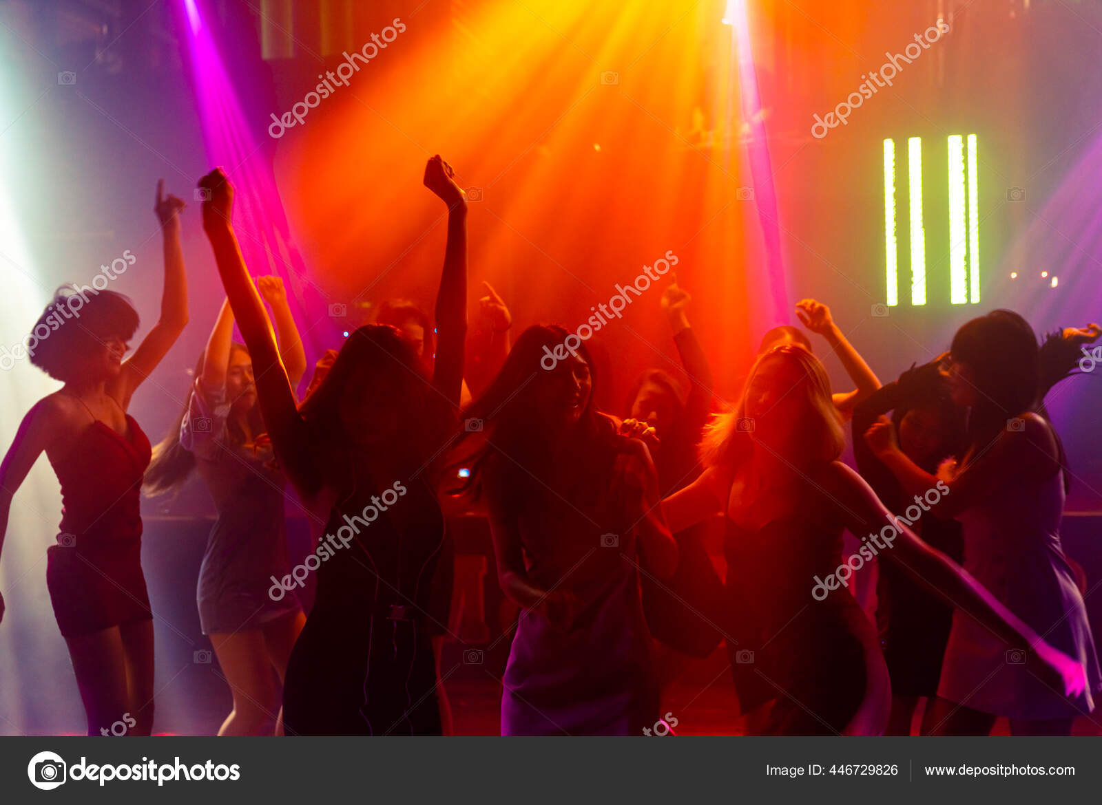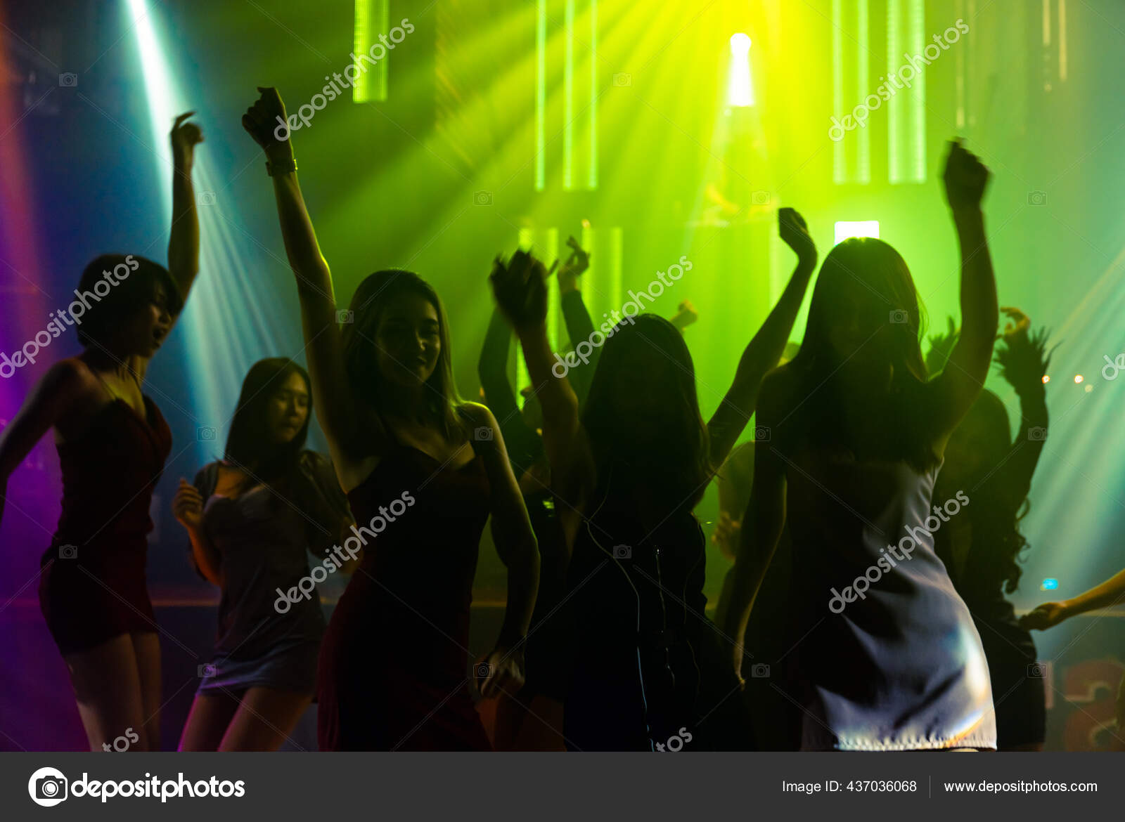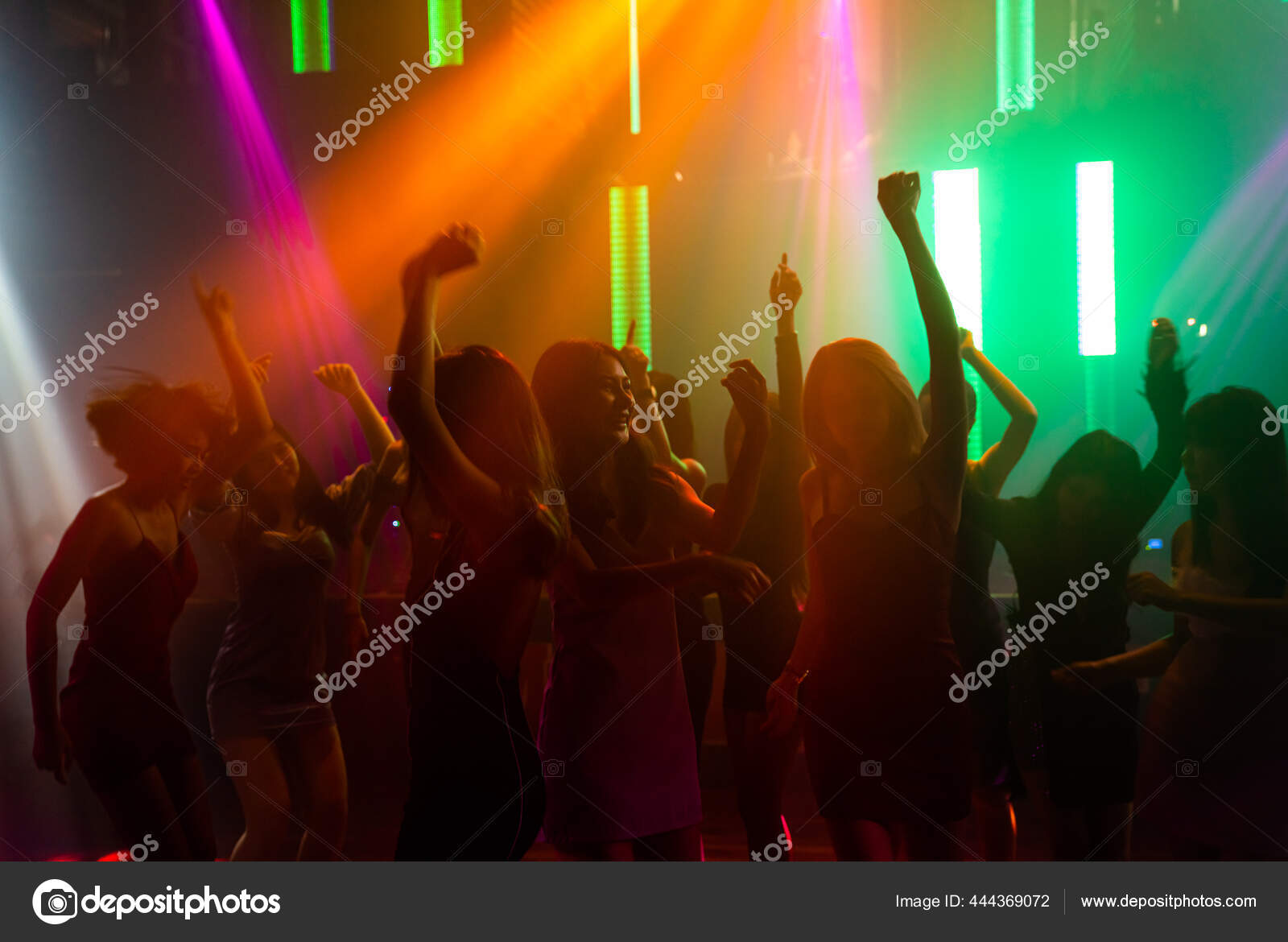 Silhouette Image of People Dance in Disco Night Club To Music from DJ on Stage Stock Image - Image of girl, disco: 211320299