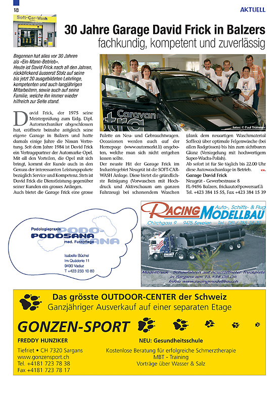 18 • 30 Jahre Garage David Frick in Balzers | exclusiv Nr. 98 / Juli 2005 | 2005 | Archiv Magazine 2002 - 2020 | Magazin | exclusiv