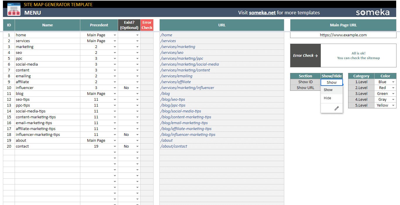Sitemap Generator Excel Template | Web Sitemap Creator Tool