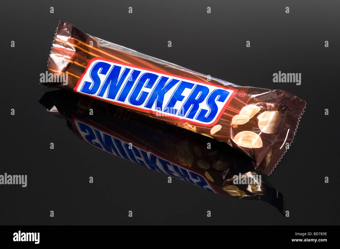 Snickers Schokoriegel auf schwarzem Hintergrund im Studio gedreht Stockfotografie - Alamy