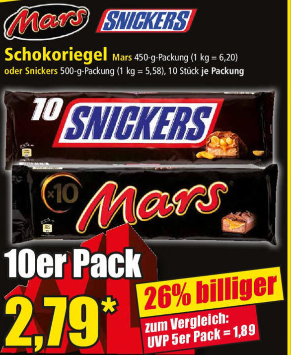 Mars/Snickers Schokoriegel 10er Pack Angebot bei Norma