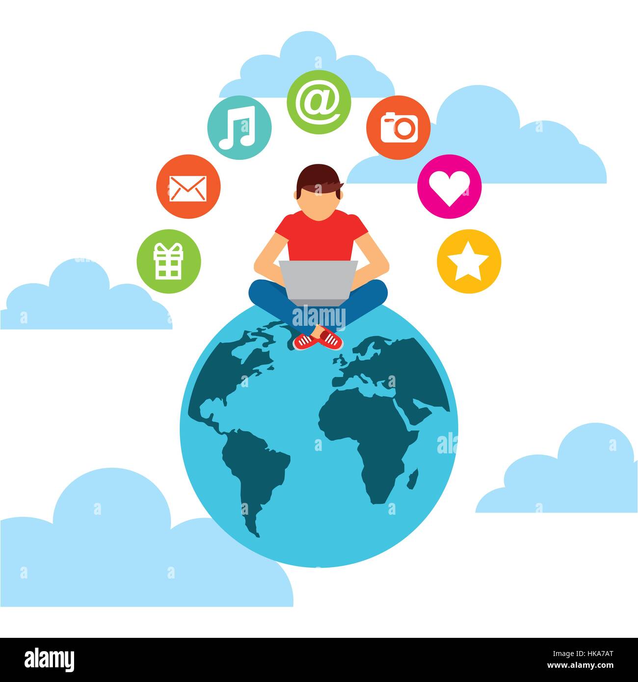 Social Media Welt Konzeption Illustration, Menschen rund um den ...