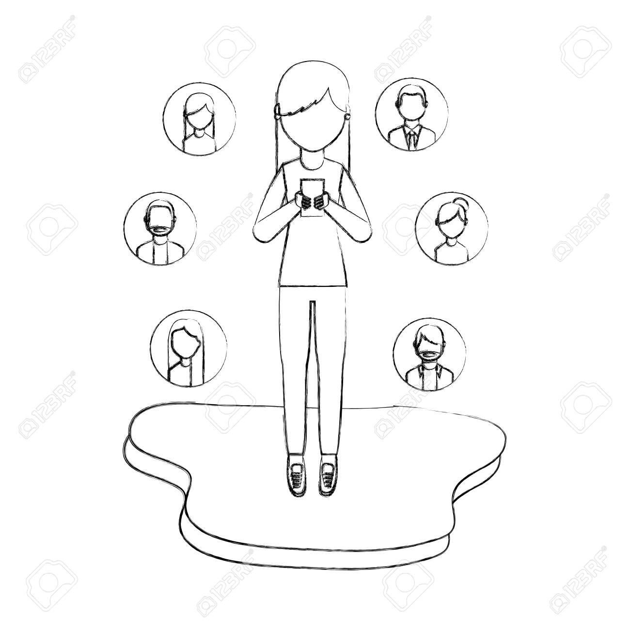 Mädchen Stehend Mit Smartphone Social Media Menschen Vektor ...