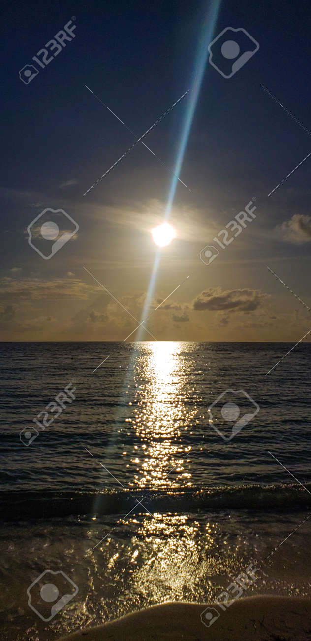 Sonne am Strand, letztes Licht am Meer Stock-Foto | Adobe Stock
