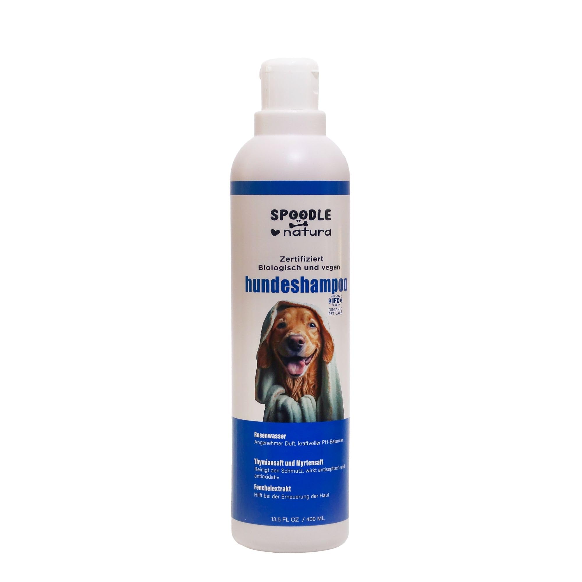 Spoodle Natura Natürliches Hundeshampoo - Bio-Zertifiziert - Sanftes Shampoo für Normal, Juckende, Empfindliche und Trockene Haut - Tränenfreie Formel- für alle Hunde und Welpen 100% Vegan - 400 Ml : Amazon.de: Haustier