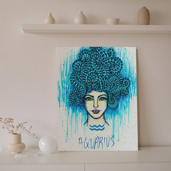 Wassermann Leinwand Kunst Sternzeichen Wandkunst Hellblaue Leinwand Astrologie Kunst Tribal Art Zeichnung - Etsy.de