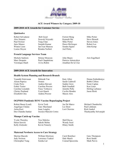 1 ACE Award Winners by Category 2009-10 - Ontario Obesity ...