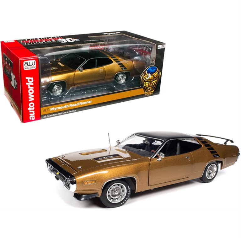 Autoworld AMM1258 1971 Plymouth RoadRunner 440 Plus 6 Hardtop GY8 Gold Leaf Metallic with Black Top & Stripes Class of 1971 American Muscle 30th ...