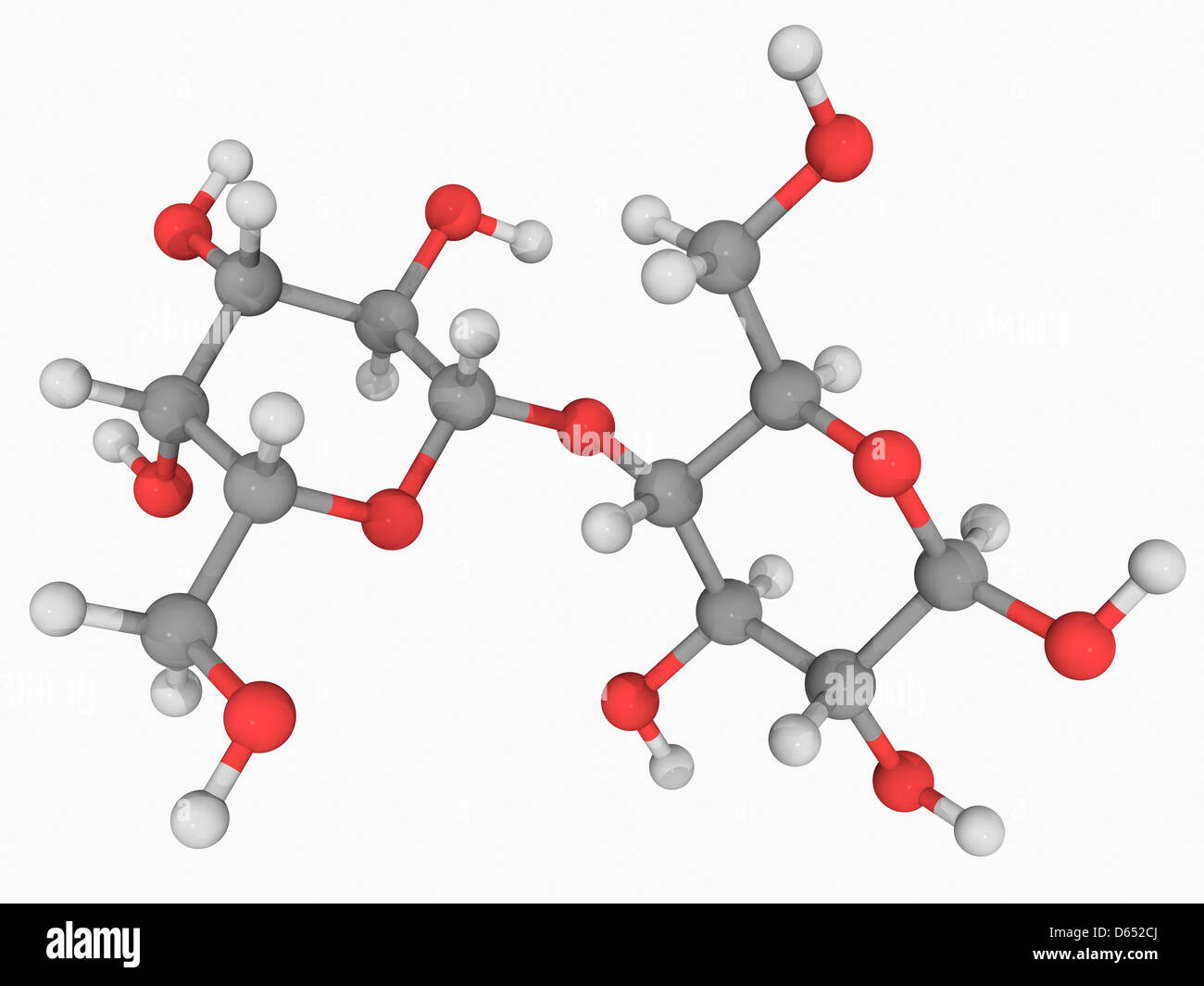 Lactose Milchzucker-Molekül, Die Chemische Struktur. Laktose Ist Das Disaccharid Zucker In Der Milch Gefunden. Atome Sind Als Kugeln Mit Herkömmlichen Farbcodierung Repräsentiert: Wasserstoff (weiß), Kohlenstoff (grau), Sauerstoff (rot) Lizenzfreie ...