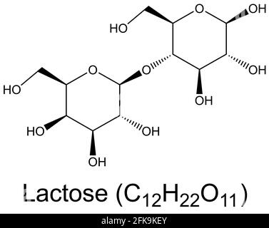 Chemische Struktur von Laktose, Anatomie von Laktose , Molekulare Struktur von , Chemische Formel von Laktose, Laktosestruktur, Zucker, der in der Milch ist Stock-Vektorgrafik - Alamy