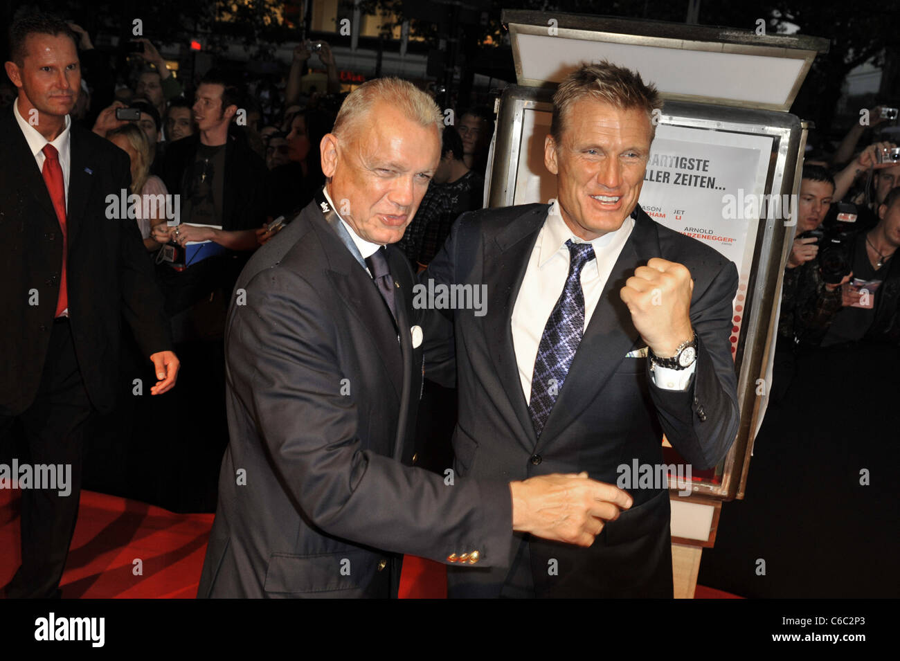 Dulph Lundgren and his Father Sylvester Stallone, Jason Statham, Dolph Lundgren at the premiere of The Expendables at Astor Stock Photo - Alamy