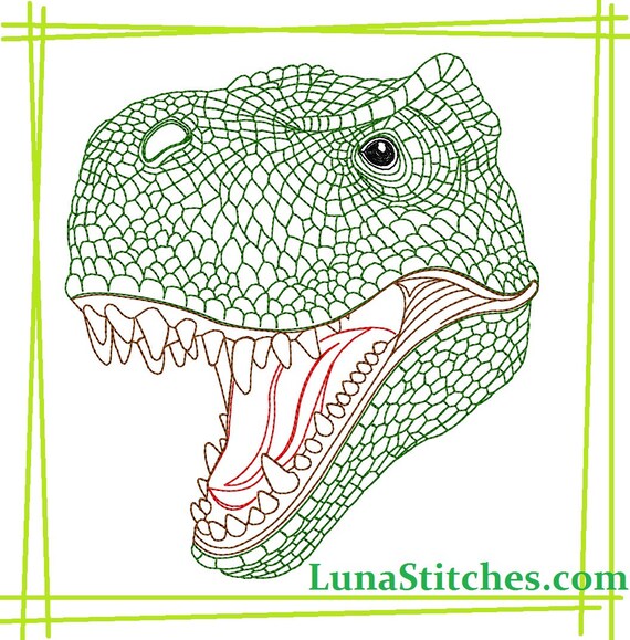 T-Rex Dino-Stickmuster 4 Größen Dinosaurier T-Rex Maschinenstickdatei Angry Rex Trex für Kinder Tyrannosaurus Dino-Kopf - Etsy.de