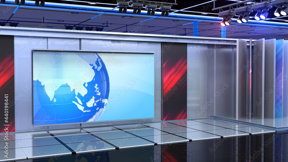 3D Virtual TV Studio News, Backdrop For TV Shows .TV On Wall.3D Virtual News Studio Background Иллюстрация Stock | Adobe Stock