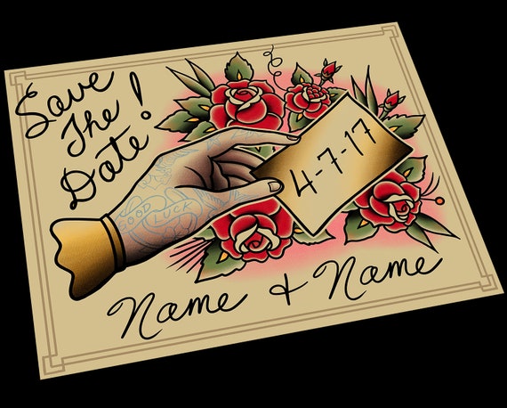 Customizable Save the Date Tattoo Flash Design Cards or Digital File - Etsy UK
