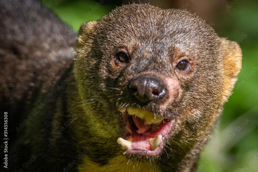 Tayra, Eira barbara, omnivorous animal from the weasel family. Tayra hidden in tropic forest, detail close-up portrait. Wildlife scene from nature, Costa Rica nature. Cute danger mammal in habitat. - Stock Image -