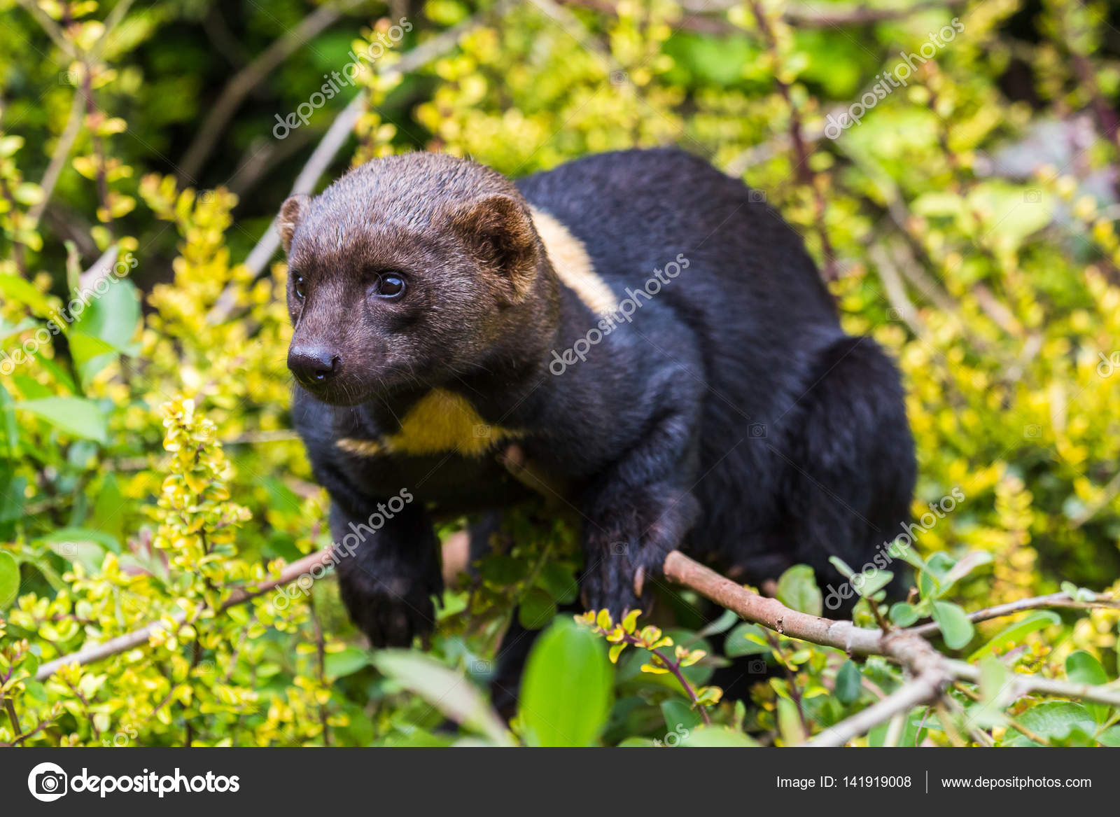Tayra, Eira barbara, omnivorous animal from the weasel family. Tayra hidden in tropic forest, sitting on the green tree. Wildlife scene from nature, C Stock Photo - Alamy
