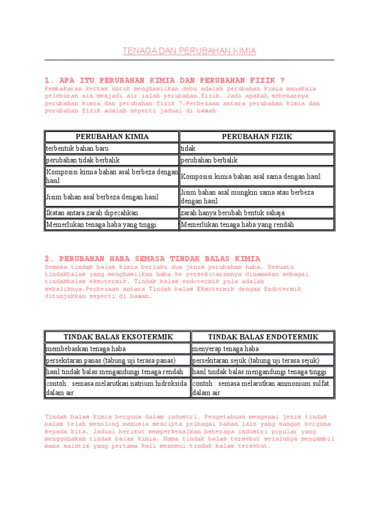 Tenaga Dan Perubahan Kimia | PDF