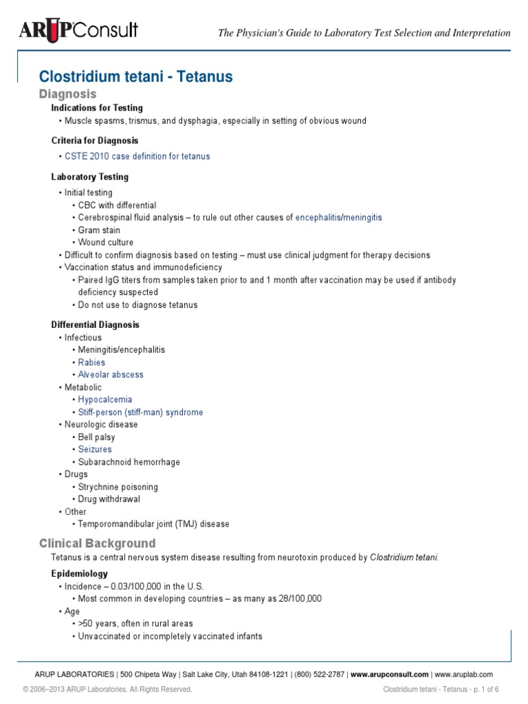 Tetanus: Symptoms, Diagnosis and Treatment