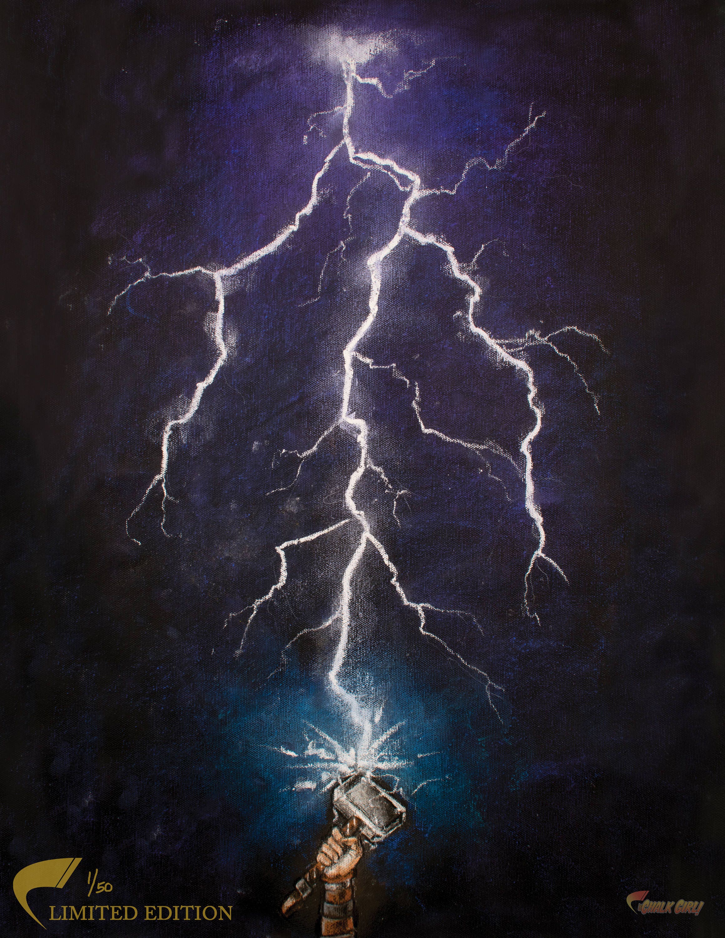 Thor's Hammer Art Print - Marvel Comics Room Decor - LIMITED EDITION - Avengers Superhero Wall Poster - Chalk Art Geek Gift